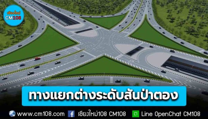 อธิบดีฯ ให้รายละเอียดเพิ่มเติมว่า ปัจจุบันถนนสายหลัก ทล.108 ช่วงผ่านเขตเมืองหางดง สันป่าตอง และชุมชนบ้านทุ่งเสี้ยว ประชาชนใช้เป็นเส้นทางหลัก ส่งผลให้มีปริมาณการจราจรที่หนาแน่น โดยเฉพาะในช่วงเวลาเร่งด่วน ทั้งนี้ เพื่อเป็นการแก้ไขปัญหาดังกล่าว ทช. จึงได้ดำเนินโครงการก่อสร้างทางแยกต่างระดับสันป่าตอง อำเภอสันป่าตอง จังหวัดเชียงใหม่ โดยใช้งบประมาณในการก่อสร้าง 1,246.285 ล้านบาท ซึ่งจะดำเนินการก่อสร้างทางลอด 1 แห่ง บริเวณ กม.ที่ 0+800 ถึง กม.ที่ 1+400 ทางลอดคู่ขนาน ความยาว 679 เมตร พร้อมก่อสร้างถนนคอนกรีตเสริมเหล็ก ขนาด 6 ช่องจราจร ไป – กลับ ช่องละ 3 – 3.50 เมตร และมีไหล่ทางกว้างข้างละ 1 – 2.50 เมตร นอกจากนี้ ยังมีระบบระบายน้ำ ระบบไฟฟ้าแสงสว่างภายในอุโมงค์/บนถนน และติดตั้งอุปกรณ์อำนวยความปลอดภัยอีกด้วย