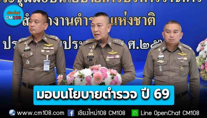 ก่อนมอบนโยบาย ผบ.ตร. ได้กล่าวขอขอบคุณข้าราชการตำรวจทุกนายที่ได้ร่วมกันปฏิบัติงานในปีงบประมาณ พ.ศ.2568 เป็นอย่างดี สร้างความเชื่อมั่นและศรัทธาต่อพี่น้องประชาชน และขอยกย่อง เชิดชูเกียรติ ตำรวจที่ได้ทำงานในการปกป้องรักษาอธิปไตย การรักษาความปลอดภัยพี่น้องประชาชนในพื้นที่ปะทะแนวชายแดน พื้นที่ส่วนหลัง ตลอดจนการขับไล่ผู้รุกราน ก่อความวุ่นวาย ลุกล้ำพื้นที่ของไทย ขอให้ทุกท่านได้รำลึกถึงภารกิจที่ตำรวจเหล่านั้นได้ปฏิบัติอย่างกล้าหาญ มีเกียรติและศักดิ์ศรี เราจึงต้องร่วมกันดูแล ค้ำชู ข้าราชการตำรวจและครอบครัวที่ได้รับผลกระทบในทุก ๆ ด้าน และขอให้ทุกหน่วยปฏิบัติร่วมกันหน้าที่และสนับสนุนการปฏิบัติดังกล่าวอย่างเต็มกำลังความสามารถต่อไป