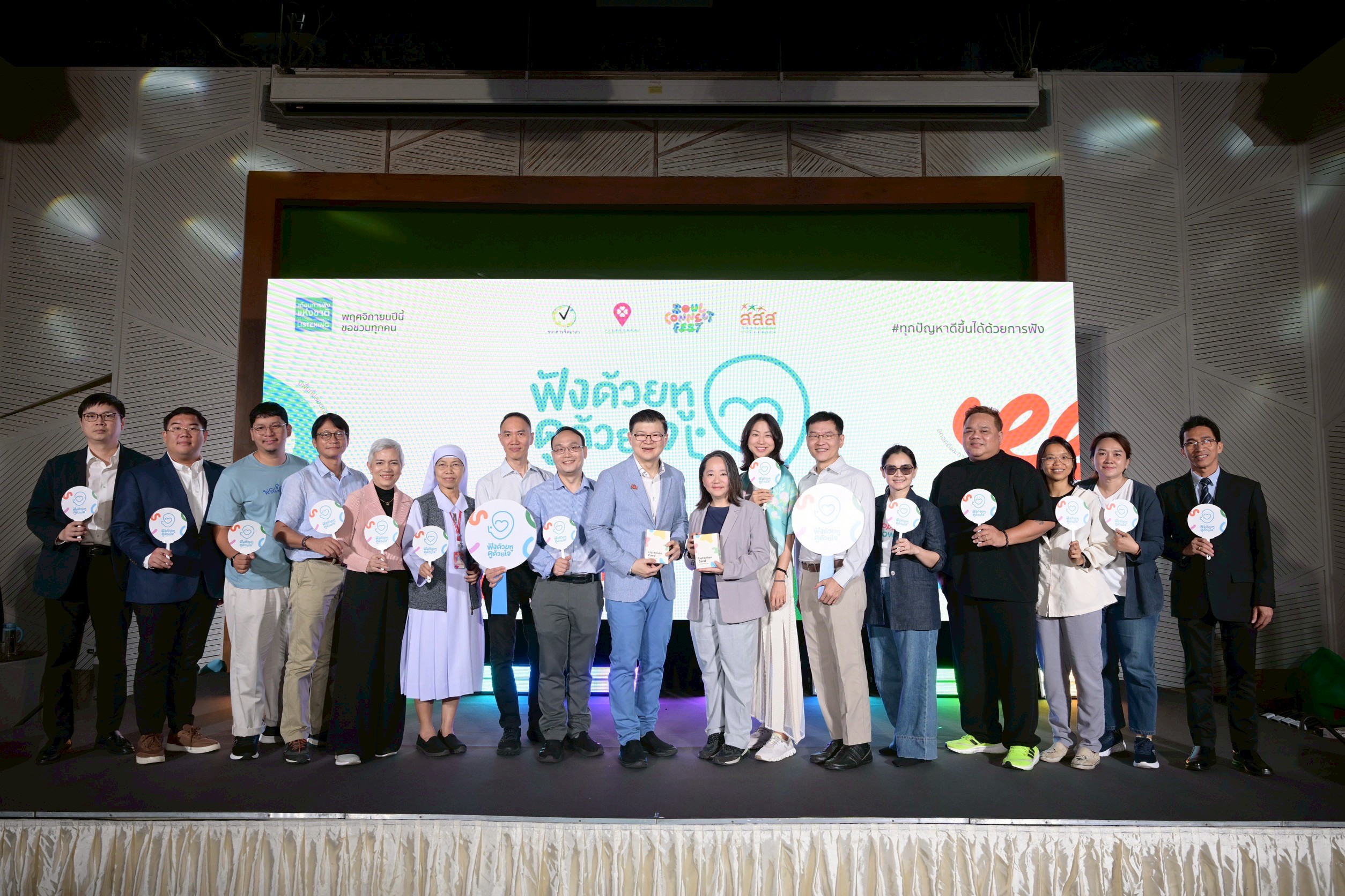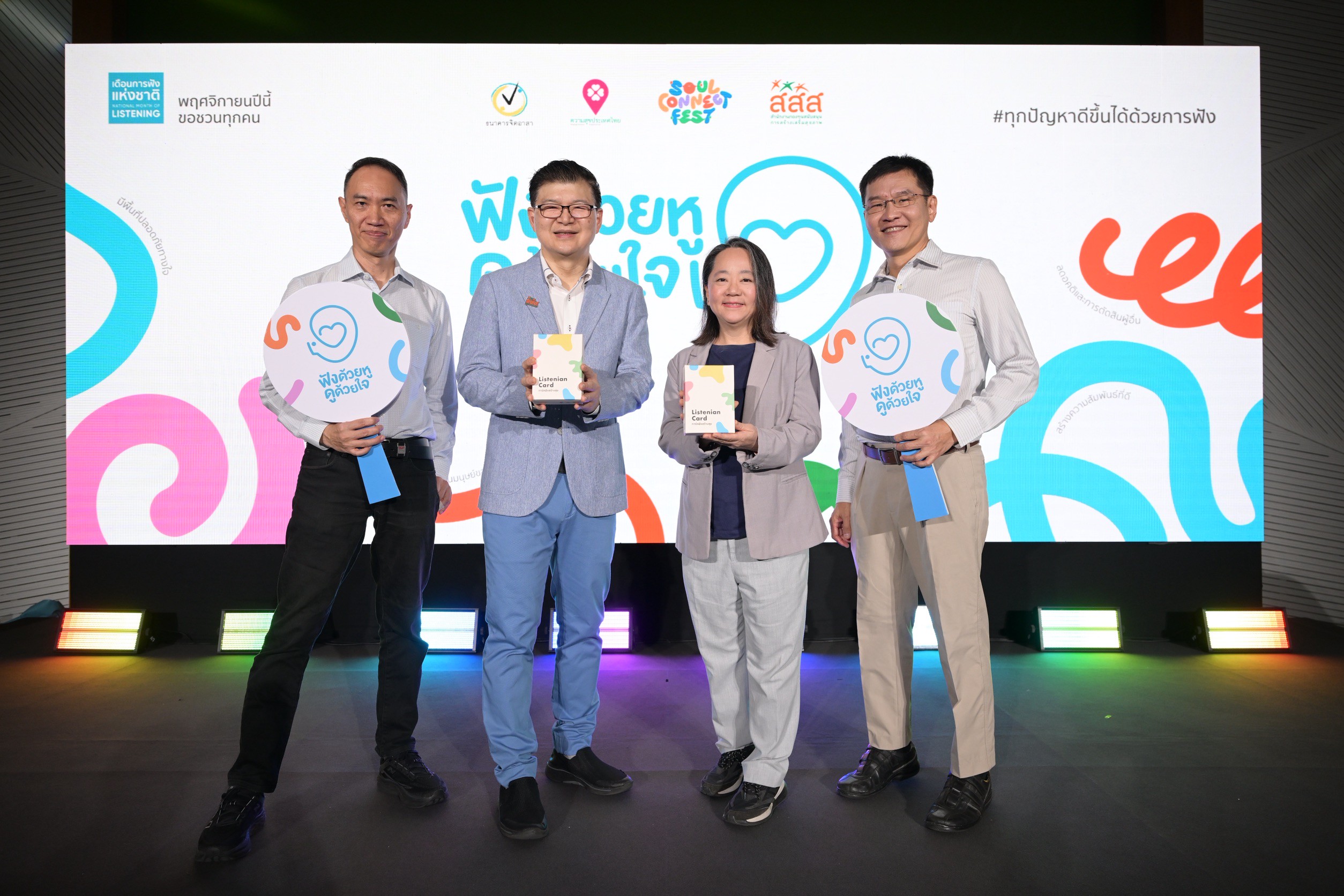 นพ.พงศ์เทพ วงศ์วัชรไพบูลย์ ผู้จัดการกองทุน สสส. กล่าวว่า สสส. สานพลังภาคีเครือข่ายสุขภาวะทางปัญญา กำหนดให้เดือน พ.ย. ของทุกปี เป็น “เดือนการฟังแห่งชาติ” เกิดขึ้นเป็นครั้งแรกของไทยในปี 2567 สอดคล้องกับหลายประเทศทั่วโลกที่กำหนดให้เดือน พ.ย. เป็นเดือนแห่งการสร้างวัฒนธรรมการฟัง มีกิจกรรมส่งเสริมการฟังเกิดขึ้นตลอดเดือน เพื่อกระตุ้นให้คนในสังคมได้เห็นถึงความสำคัญของการรับฟัง ซึ่งเป็นพื้นฐานในการสร้างความสัมพันธ์ของตนเองกับผู้อื่น มีพื้นที่รับฟังเกิดขึ้น 91 แห่งทั่วประเทศ ประชาชนเข้ารับบริการรับฟังกับจิตอาสา 2,298 คน เข้าถึงสื่อการเรียนรู้สร้างทักษะการฟัง 1.7 ล้านคน จากความสำเร็จที่เกิดขึ้น ในปี 2568 สสส. จึงเดินหน้าจัดทำแคมเปญในวาระเดือนการฟังแห่งชาติต่อเนื่องเป็นปีที่ 2 กับแนวคิด “ทุกปัญหาดีขึ้นได้ด้วยการฟัง” และร่วมกับธนาคารจิตอาสา และจุฬาลงกรณ์มหาวิทยาลัย จัดทำผลสำรวจความเหงาสำหรับบริบทของสังคมไทย ในกลุ่มประชาชนอายุ 18-75 ปี ครั้งแรกของไทย