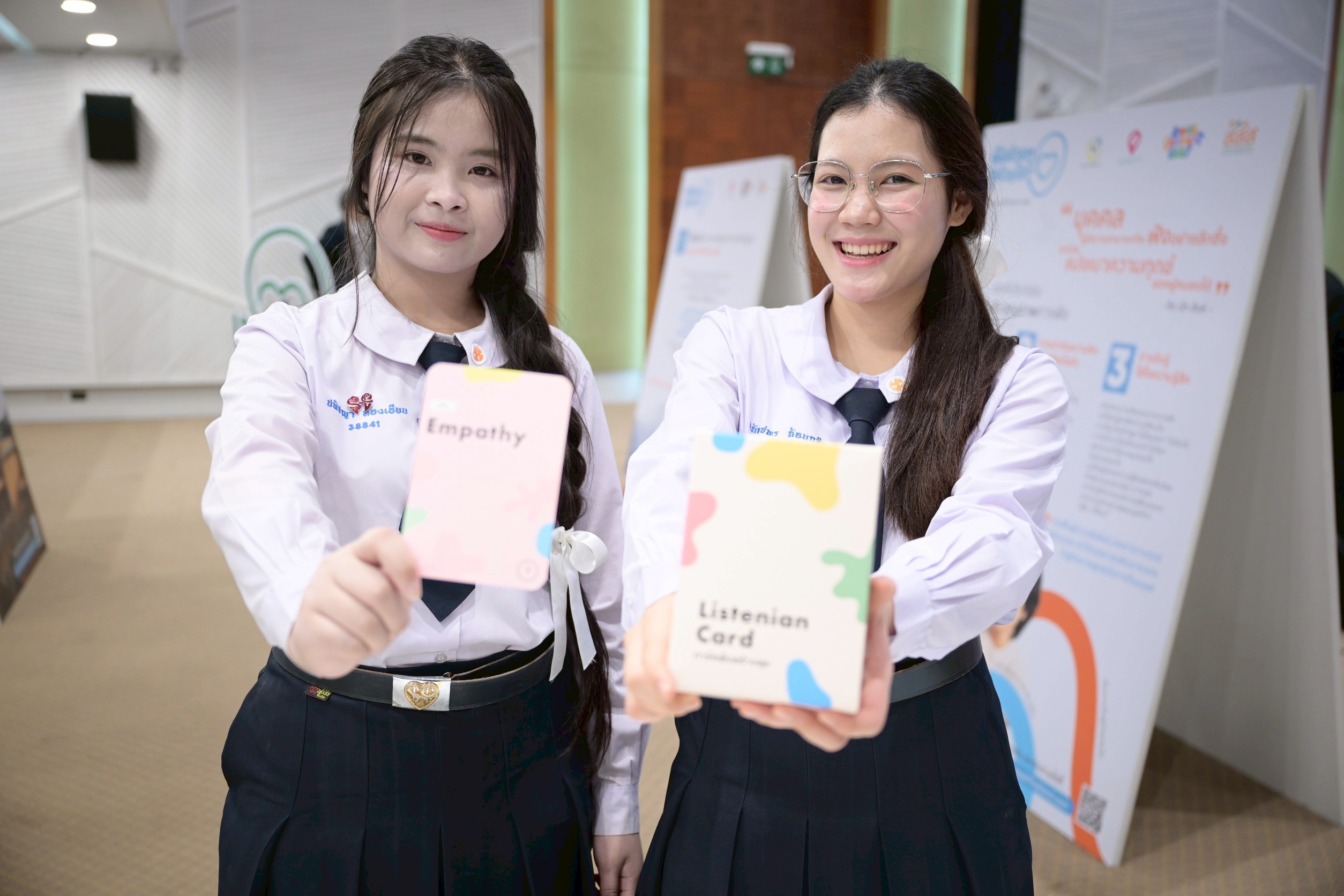 2. กิจกรรมสร้างพื้นที่รับฟังของแต่ละองค์กร ธนาคารจิตอาสา ร่วมกับ สสส. พัฒนานวัตกรรมการ์ดฟังสร้างสุข (Listenian Card) เป็นเครื่องมือเพิ่มทักษะการฟังเบื้องต้น การรู้เท่าทันความคิด ไปจนถึงการใส่ใจความรู้สึก ส่งเสริมให้หน่วยงานภาครัฐ ภาคเอกชน ภาคประชาสังคม และชุมชน นำนวัตกรรม Listenian Card ไปใช้ในการพัฒนากิจกรรมสร้างพื้นที่แห่งการรับฟัง ให้เหมาะสมกับวัฒนธรรมขององค์กร รวมถึงใช้ในการสำรวจความสัมพันธ์ของคนในองค์กรที่ต้องเริ่มต้นด้วยการรับฟังซึ่งกันและกัน โดยคาดว่าจะมีองค์กรร่วมสร้างพื้นที่เรียนรู้การฟังไม่น้อยกว่า 100 แห่ง ตลอดเดือนพฤศจิกายน ทั้งนี้ สำหรับประชาชนและองค์กรที่ต้องการใช้นวัตกรรมการ์ดฟังสร้างสุข สามารถติดตามรายละเอียดเพิ่มเติมได้ที่ เฟซบุ๊กแฟนเพจ ‘ความสุขประเทศไทย’” ดร.สรยุทธ กล่าว