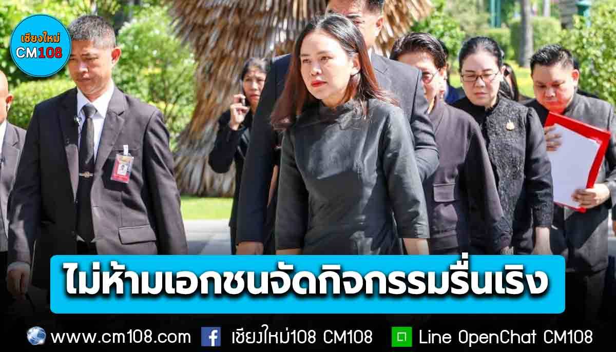 นายกฯ ได้กล่าวในที่ประชุมและในแถลงการณ์ว่า รัฐบาลขอความร่วมมือให้พี่น้องประชาชนและภาคเอกชน พิจารณาปรับรูปแบบการจัดกิจกรรมต่าง ๆ ให้เหมาะสมกับบรรยากาศแห่งความอาลัย โดยมิได้มีคำสั่งห้ามหรือมติให้ระงับกิจกรรมใดเป็นการเฉพาะ