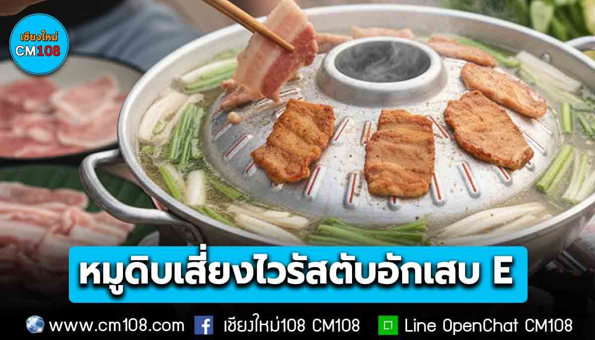 สายพันธุ์ที่พบในบ้านเราเป็นสายพันธุ์ที่ 3 มีแหล่งรังโรคอยู่ใน หมู การติดต่อที่สำคัญจึงเป็นการติดต่อทางการรับประทาน เชื้อที่ปนเปื้อนกับอาหาร โดยเฉพาะอาหารที่เป็นผลิตภัณฑ์ของหมู ไม่สุก เช่น การรับประทานหมูกระทะ และใช้ตะเกียบคีบหมู เพื่อปิ้ง ย่าง และใช้ตะเกียบอันเดียวกัน ครีบอาหารเข้าปาก ซึ่งอาจจะปนเปื้อนเชื้อไวรัสตับอักเสบ E เข้าไป ในหมูกระทะ เนื้อหมูไม่ได้มาจากหมูตัวเดียว จะมาจากหมูเป็นจำนวนมากหลายตัวผสมกัน หรือปนเปื้อนกัน จึงทำให้มีโอกาสเสี่ยงสูง มากกว่าการกินจากหมูตัวเดียว และกินอาหารที่สุกสะอาด