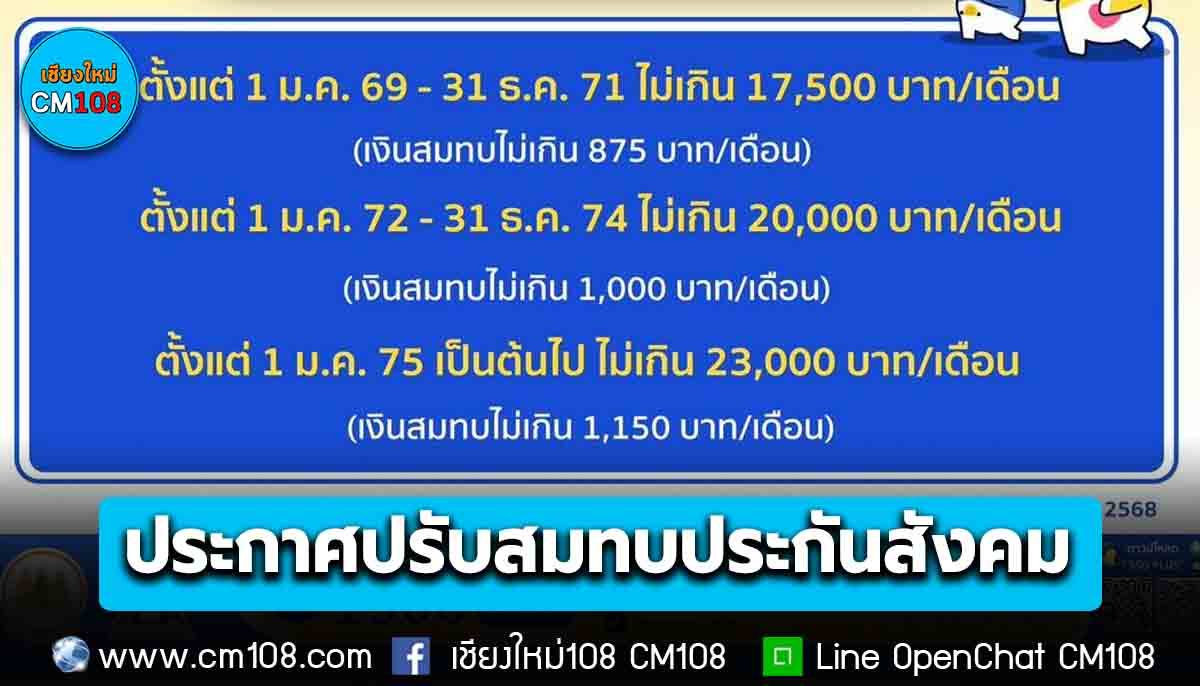 เมื่อวันที่ 12 ธ.ค. 68 เว็บไซต์ราชกิจจานุเบกษา เผยแพร่กฎกระทรวงกำหนดค่าจ้างขั้นต่ำและขั้นสูงที่ใช้เป็นฐานในการคำนวณเงินสมทบของผู้ประกันตนตามมาตรา 33 พ.ศ. 2568อาศัยอำนาจตามความในมาตรา 7 วรรคหนึ่ง แห่งพระราชบัญญัติประกันสังคม พ.ศ. 2533 และมาตรา 46 วรรคห้า แห่งพระราชบัญญัติประกันสังคม พ.ศ. 2533 ซึ่งแก้ไขเพิ่มเติมโดยพระราชบัญญัติประกันสังคม (ฉบับที่ 3) พ.ศ. 2542 รัฐมนตรีว่าการกระทรวงแรงงานออกกฎกระทรวงไว้ดังต่อไปนี้