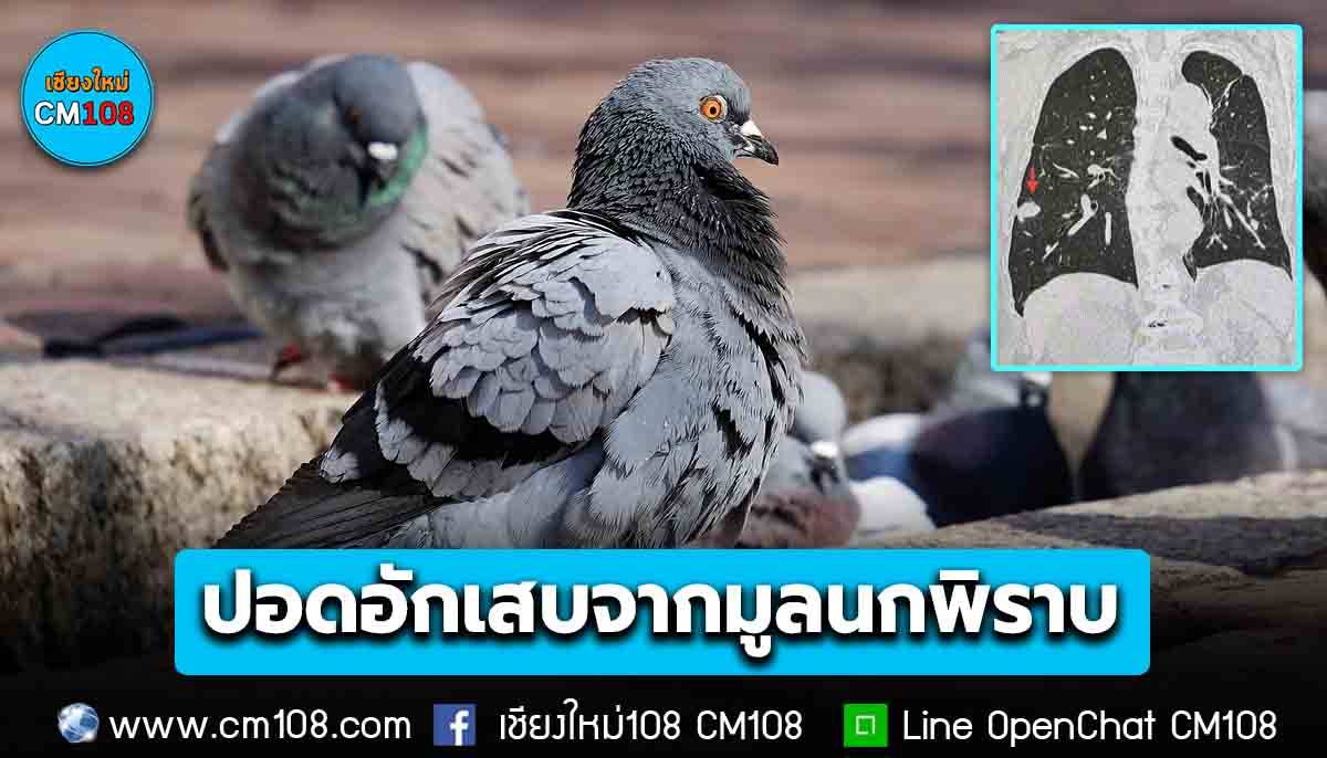 ซักประวัติ ที่บ้านเป็นตึก 4 ชั้น ผู้ป่วยอาศัยอยู่ในห้องชั้น 2 ที่บ้านเลี้ยงนกพิราบหลายตัวบนดาดฟ้าหลายปีแล้ว นกพิราบมาเกาะที่ระเบียงและขอบหน้าต่างห้องผู้ป่วยเป็นประจำ ผู้ป่วยชอบทำความสะอาดมูลนกพิราบติดที่ระเบียงและขอบหน้าต่าง