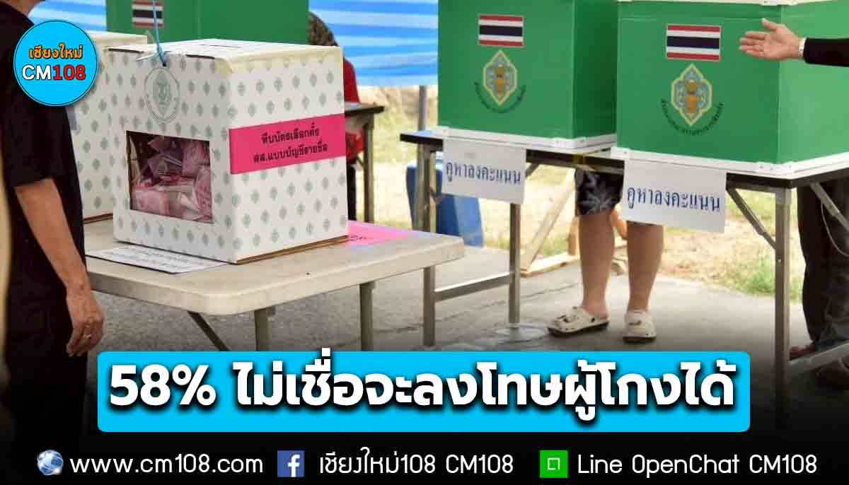 เมื่อสอบถามตัวอย่างที่ระบุว่า มีการทุจริตการเลือกตั้งแน่นอนและอาจจะมีการทุจริต ในเขตเลือกตั้งของตนเอง เมื่อวันที่ 8 กุมภาพันธ์ 2569 (จำนวน 477 หน่วยตัวอย่าง) เกี่ยวกับความสามารถของคณะกรรมการการเลือกตั้ง (กกต.) ในการลงโทษผู้ที่กระทำการทุจริตการเลือกตั้ง ในเขตเลือกตั้งของตนเอง พบว่า ตัวอย่าง ร้อยละ 58.28 ระบุว่า จะไม่สามารถลงโทษใครได้เลย รองลงมา ร้อยละ 28.93 ระบุว่า อาจจะลงโทษได้บ้าง บางกรณี ร้อยละ 11.32 ระบุว่า จะสามารถลงโทษได้แน่นอน และร้อยละ 1.47 ระบุว่า ไม่ตอบ/ไม่สนใจ