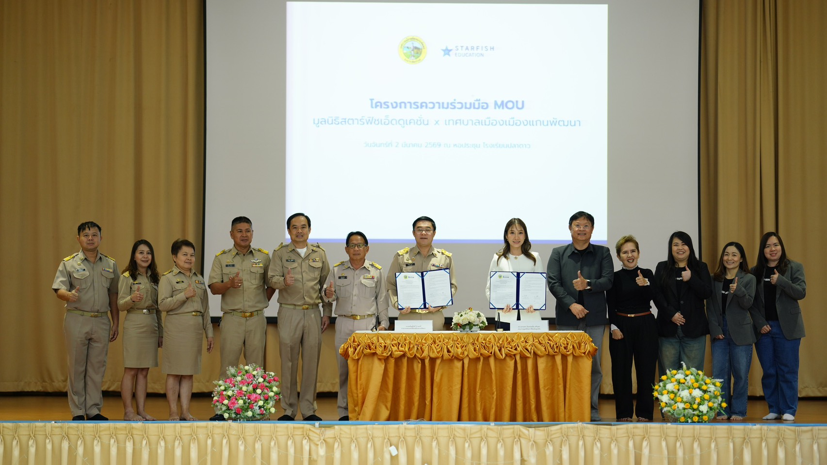 เมื่อวันจันทร์ที่ 2 มีนาคม พ.ศ. 2569 เทศบาลเมืองเมืองแกนพัฒนา อำเภอแม่แตง จังหวัดเชียงใหม่ และมูลนิธิสตาร์ฟิชเอ็ดดูเคชั่น ได้ร่วมลงนามในบันทึกข้อตกลงความร่วมมือ (MOU) ว่าด้วยการพัฒนาคุณภาพการจัดการศึกษาในท้องถิ่น อย่างเป็นทางการ ณ หอประชุมโรงเรียนปลาดาว โดยมีผู้บริหารและตัวแทนจากทั้งสองหน่วยงานเข้าร่วมพิธีลงนาม