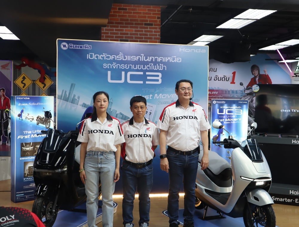 Honda เปิดตัว New Honda UC3 รถจักรยานยนต์ไฟฟ้า 100% รุ่นใหม่ล่าสุด ในภาคเหนืออย่างเป็นทางการ ภายในงานที่จัดขึ้นเมื่อวันที่ 14 มีนาคม 2569 เวลา 10:30 น. ที่ผ่านมา ณ นิยมพานิช สำนักงานใหญ่ ท่ามกลางความสนใจของชาวเชียงใหม่และลำพูนที่มาร่วมสัมผัสรถตัวจริง และทดลองขับ Test Drive กันอย่างคึกคัก