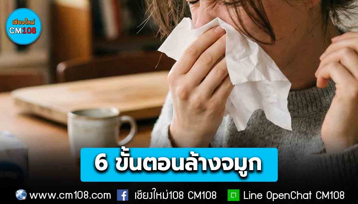6. หลังจากล้างเสร็จ สั่งน้ำมูก หรือน้ำเกลือที่ค้างอยู่ในโพรงจมูก ล้างทำความสะอาดอุปกรณ์ที่ใช้ล้างจมูก แล้วผึ่งให้แห้งก่อนเก็บ