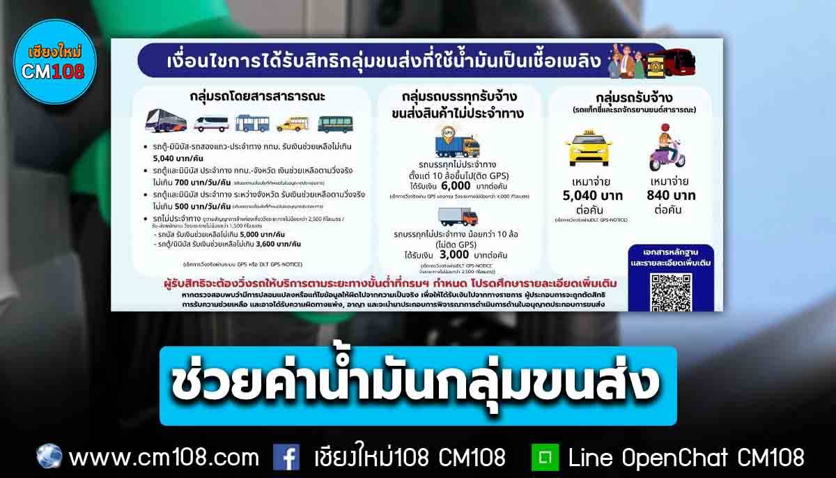 นายสรพงศ์ ไพฑูรย์พงษ์ อธิบดีกรมการขนส่งทางบก กล่าวว่า กรมการขนส่งทางบก ออกประกาศกรมการขนส่งทางบก เรื่อง มาตรการช่วยเหลือประชาชนในกลุ่มขนส่งที่ใช้น้ำมันเป็นเชื้อเพลิงเพื่อบรรเทาผลกระทบจากราคาน้ำมันที่ปรับตัวสูงขึ้นจากสถานการณ์ความขัดแย้งในภูมิภาคตะวันออกกลาง เพื่อกำหนดหลักเกณฑ์การให้ความช่วยเหลือครอบคลุมทั้งกลุ่มรถโดยสารประจำทาง รถโดยสารไม่ประจำทาง รถแท็กซี่ รถจักรยานยนต์สาธารณะ รวมถึงกลุ่มรถที่ใช้ในการขนส่งสัตว์หรือสิ่งของไม่ประจำทาง (รถขนส่งสินค้า)