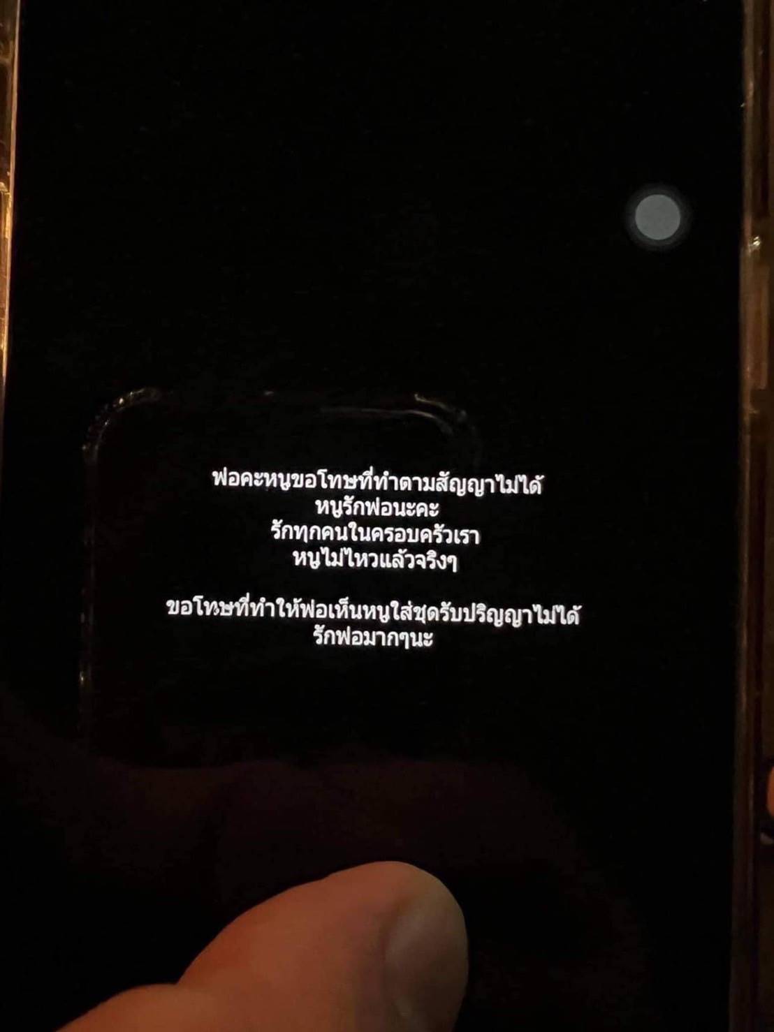 และตรวจสอบข้อมูลในโทรศัพท์พบเธอเขียนข้อความสั่งเสียไว้ “ขอโทษพ่อ รักทุกคนในครอบครัว หนูไม่ไหวแล้วจริงๆ ขอโทษที่ทำให้พ่อไม่เห็นหนูสวมใส่ชุดรับปริญญา” จึงคิดว่าเธอน่าจะคิดสั้นกระโดดน้ำ จึงรีบโทรศัพท์แจ้งตำรวจทันที ที่ผ่านมา น้องจอย ปกติเป็นคนร่าเริงแต่เวลามีปัญหาไม่เคยเล่าอะไรให้ฟัง สาเหตุคาดว่าน่าจะมาจากเธอเป็นโรคซึมเศร้า เรื่องการเรียนก็ไม่มีปัญหาอีกประมาณ 1 เทอมก็จะจบมหาวิทยาลัยแล้ว