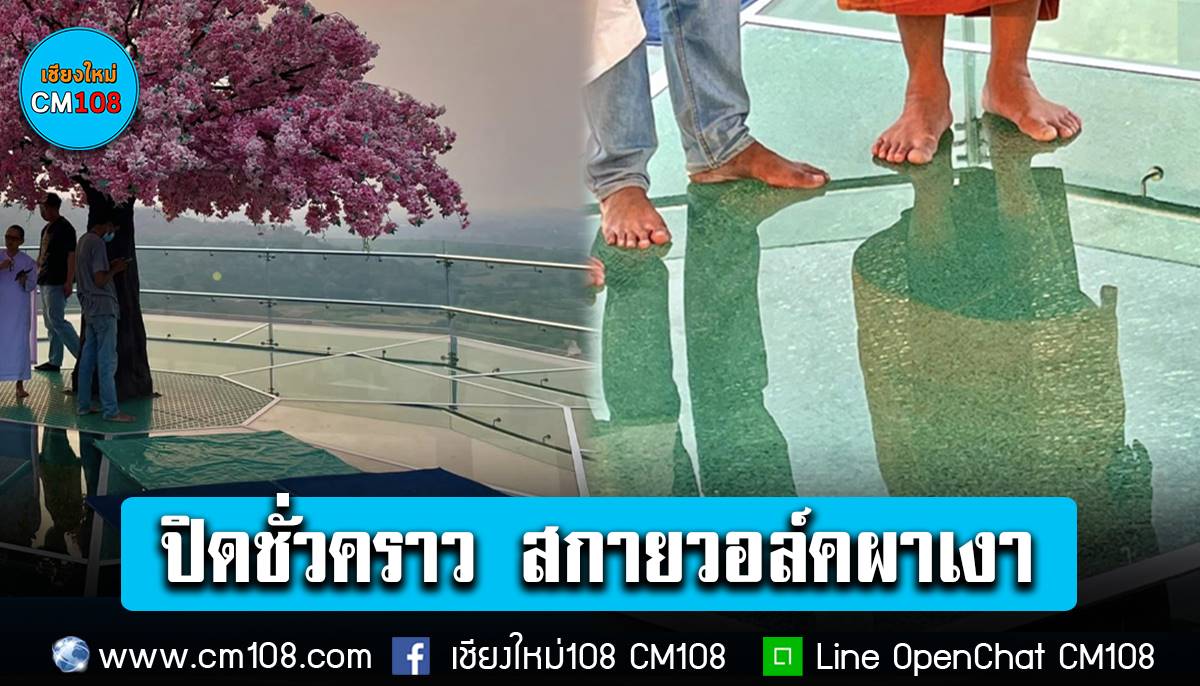 เนื่องด้วยวันนี้ (02-04-66) มีเหตุการณ์เกิดขึ้นที่แผ่นกระจกของสกายวอล์คฯ ตามที่แจ้งไปก่อนหน้านี้ ทำให้มีความรู้สึกไม่สบายใจและมีความกังวลและไม่มั่นใจในความปลอดภัย ทางสกายวอล์คฯ จึงขอปิดบริการเป็นการชั่วคราว สำหรับนักท่องเที่ยวที่ตั้งใจจะมาในช่วงเวลานี้ ต้องขออภัยทุกท่านเป็นอย่างมาก คาดว่าประมาณหนึ่งสัปดาห์น่าจะสามารถเปิดต้อนรับทุกท่านได้ โปรดติดตามความคืบหน้า จะแจ้งให้ทราบเป็นระยะๆ