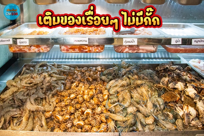 ✅ สายซีฟู้ดอาหารทะเล – จัดเต็ม! ไซร์โต ทั้ง กุ้งขาว, กุ้งแม่น้ำ, หอยหวาน, หอยเชลล์, หมึกสด, หมึกกรอบ, ปู, ปลาดอลลี่ ที่ตักได้ไม่อั้น ของเติมเรื่อยๆ แน่นอน