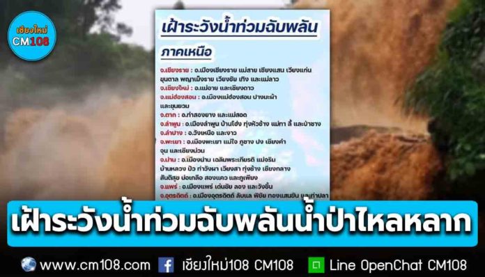 สทนช. ได้ประเมินวิเคราะห์สถานการณ์น้ำตามฝนคาดการณ์จากกรมอุตุนิยมวิทยา และสถาบันสารสนเทศทรัพยากรน้ำ (องค์การมหาชน) และการคาดการณ์พื้นที่เสี่ยงน้ำหลากและพื้นที่เสี่ยงดินโคลนถล่มบริเวณพื้นที่ต้นน้ำ จากกรมทรัพยากรน้ำและกรมทรัพยากรธรณี พบว่า มีพื้นที่เสี่ยงต้องเฝ้าระวัง ในช่วงวันที่ 16 – 22 สิงหาคม 2567 ดังนี้